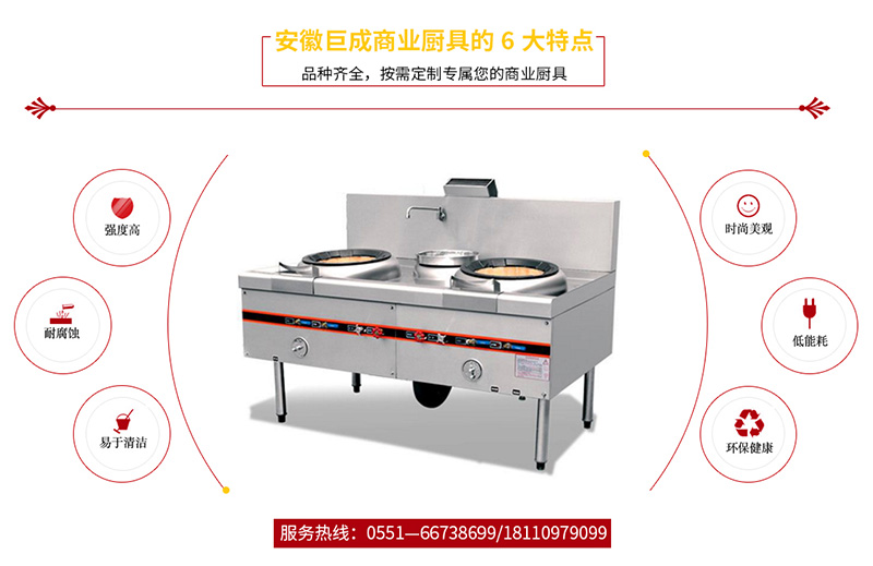 安徽巨成廚房設(shè)備有限公司是安徽省一家大型商用廚具的研發(fā)、生產(chǎn)、銷售、安裝及售后為一體的一站式綜合服務(wù)提供商,可為酒店、大型賓館、中西餐廳、部隊(duì)、廠礦企業(yè)、高等院校及企事業(yè)單位食堂提供先進(jìn)的廚房設(shè)備。